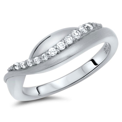 Bølgeformet ring besat med funklende zirkoniasten