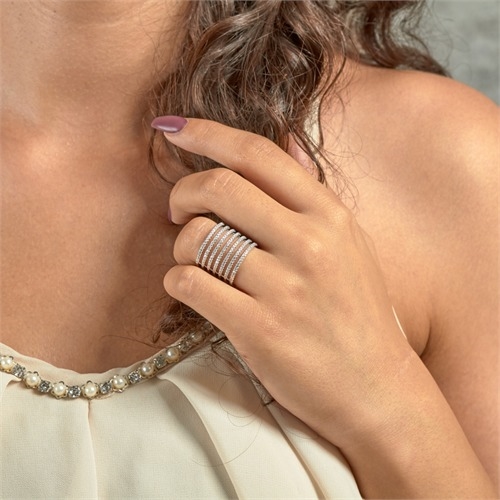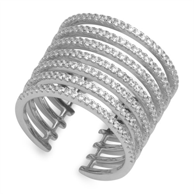 Ringen er med 7 smalle ringskinner alle besat med funklende zirkoniasten