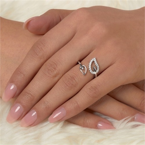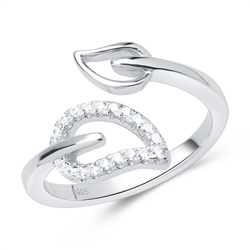Ring i flot design med blade, hvor det ene er besat med funklende zirkoniasten