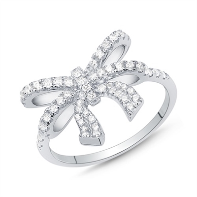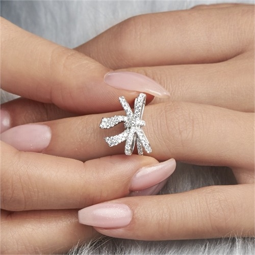 Yndig sølvring med stor sløjfe besat med talrige funklende zirkoniasten