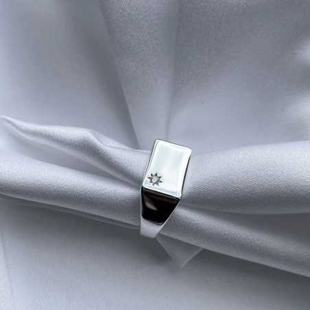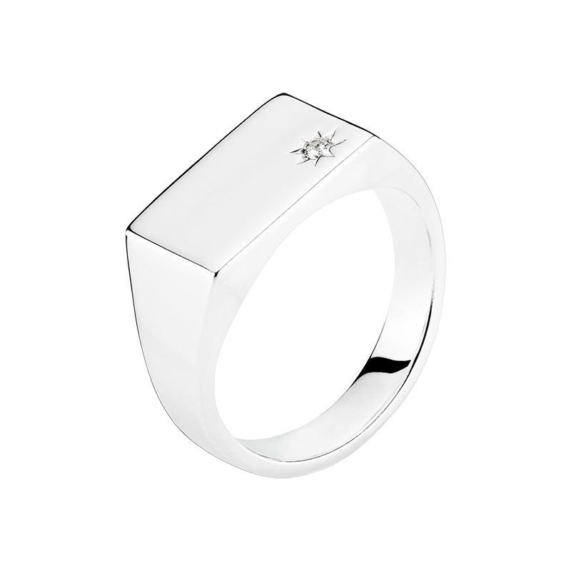 Signet ring med én funklende zirkoniasten