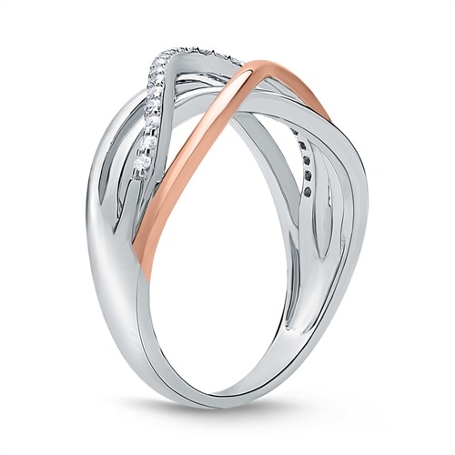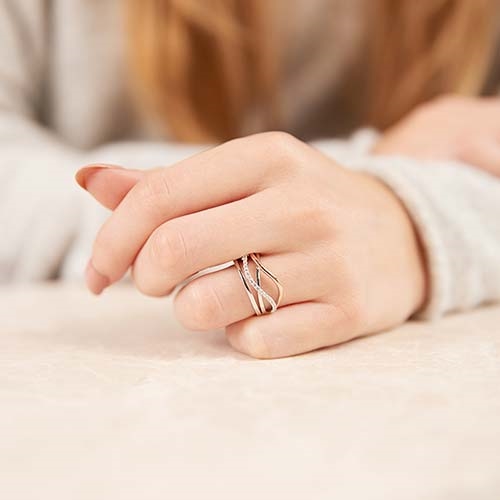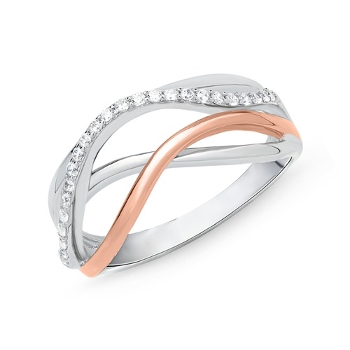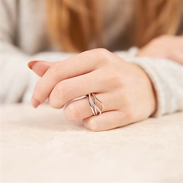 Bølgeformet ring i flot design med poleret og rosafarvet overflade