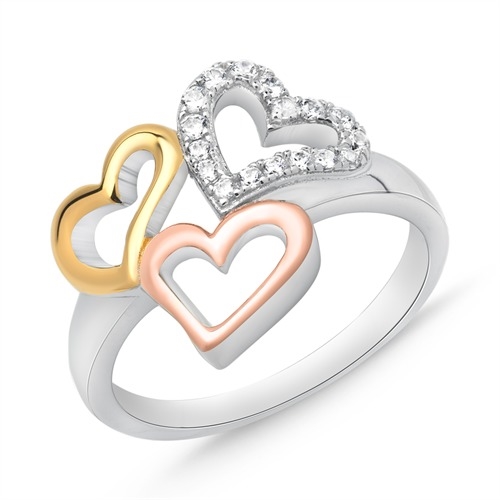 Ring i trefarvet Sølv m hjerter