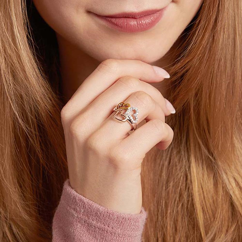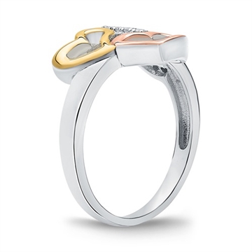 Ring i trefarvet Sølv med hjerter