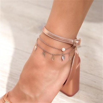 Rosaforgyldt ankelkæde i Stål med perle og blade