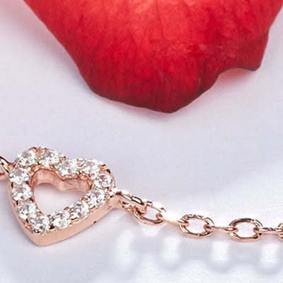 Rosaforgyldt armbånd i Sølv med hjerter
