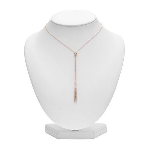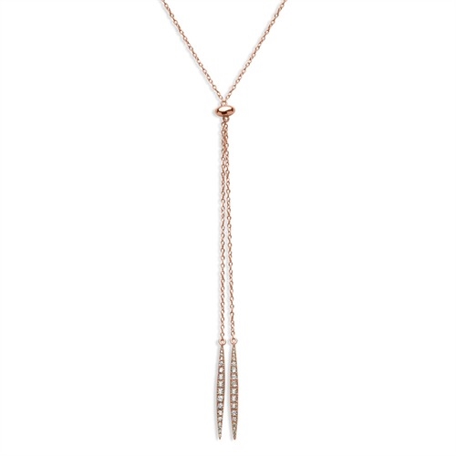 Halskæden er i Y-formet design med 2 aflange vedhæng besat med zirkonia sten