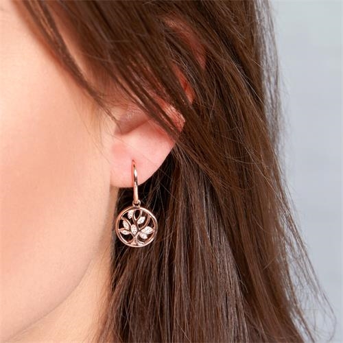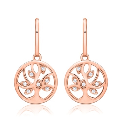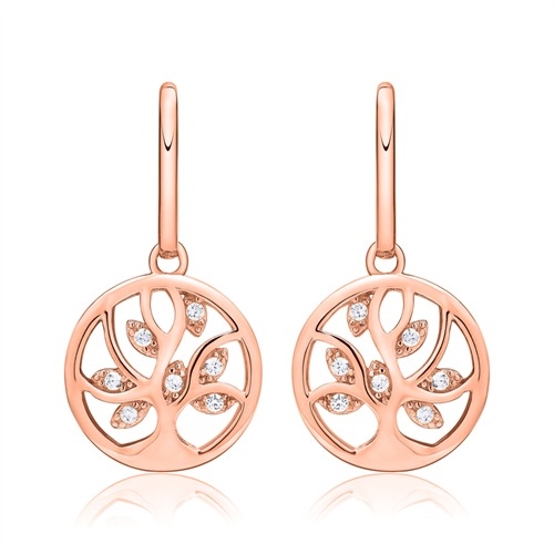 Rosaforgyldte ørehænger i Sølv med Livets træ og zirkoniasten