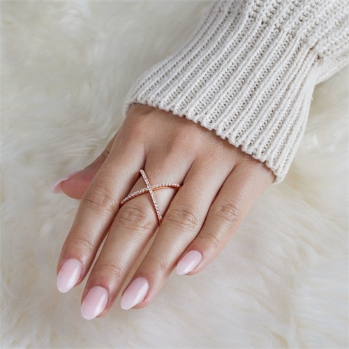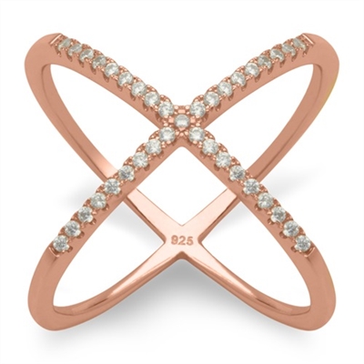 Rosa forgyldt ring i Sølv med X og zirkonia sten