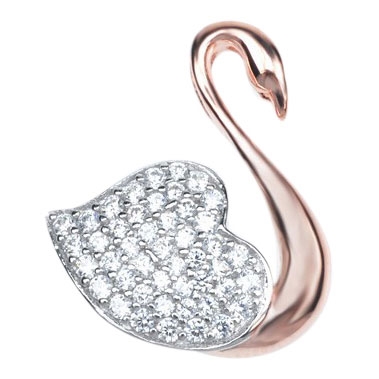 Rosaforgyldt svanevedhæng i Sølv med zirkoniasten
