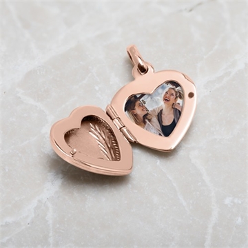Hjertetformet sølvmedaljon med poleret overflade og mønster