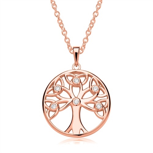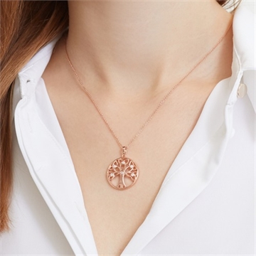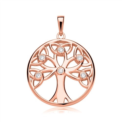 Rosaforgyldt vedhæng i Sølv med Livets træ