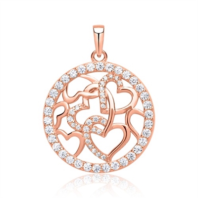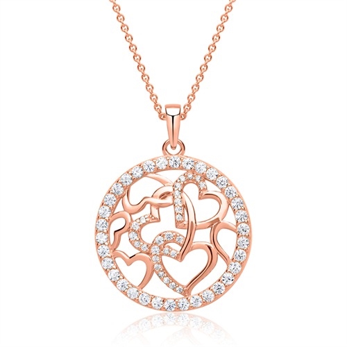 Rundt rosaforgyldt vedhæng i Sølv med hjerter