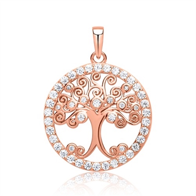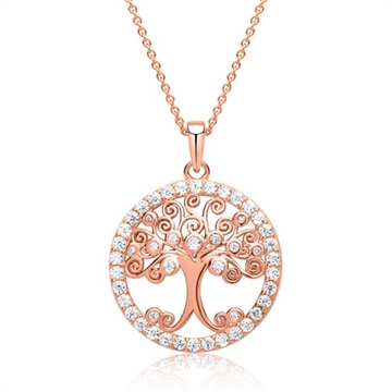 Rosaforgyldt vedhæng i Sølv m. Livets Træ