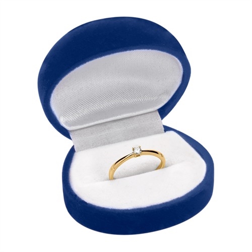 Ring i flot design med blank overflade og den runde diamant i en indfatning med 4 grapper