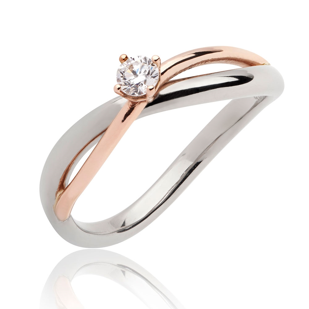 Elegant solitaitairering i 14 kt. rosaguld- og hvidguld med fattet 0,10 ct. brillantsleben diamant w/si