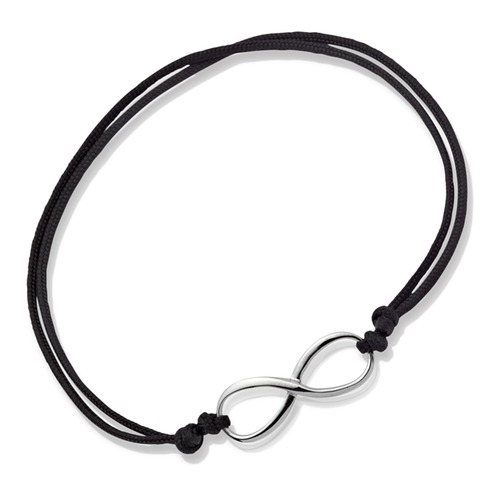 Sort armbånd i tekstil/snøre med figur i sølv