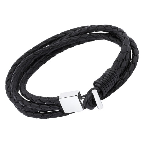 Sort læderarmbånd med stållås