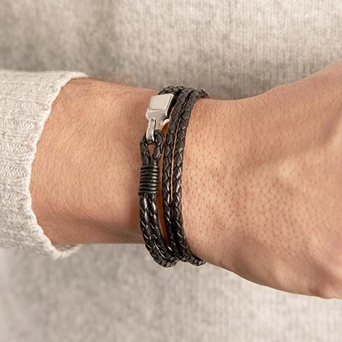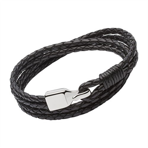 Sort herrearmbånd i læder med stållås