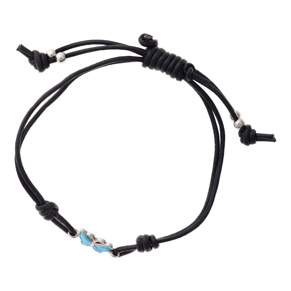 Sort læderarmbånd med blå sommerfugl