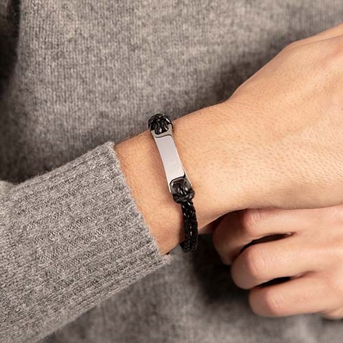 Moderne sort læderarmbånd med gravering