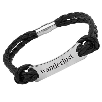 Sort læderarmbånd m. gravering