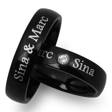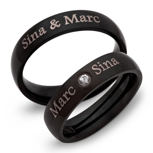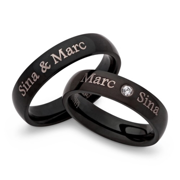 Sorte vielsesringe i Stål med lasergravering