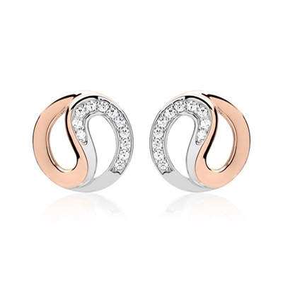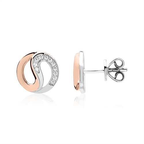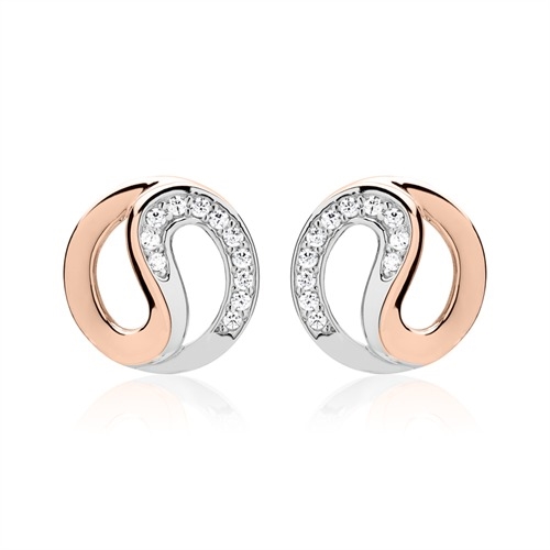 Runde ørestikker i S-formet design. Ørestikkerne er besat med funklende zirkoniasten