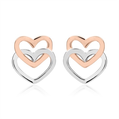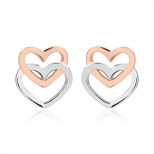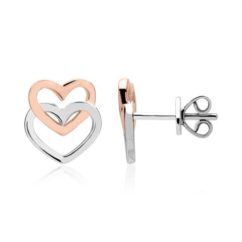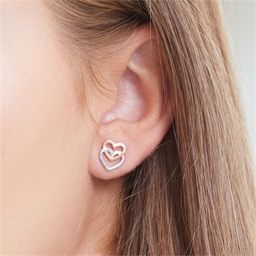 Tofarvet ørestikker i Sølv med dobbelte hjerter
