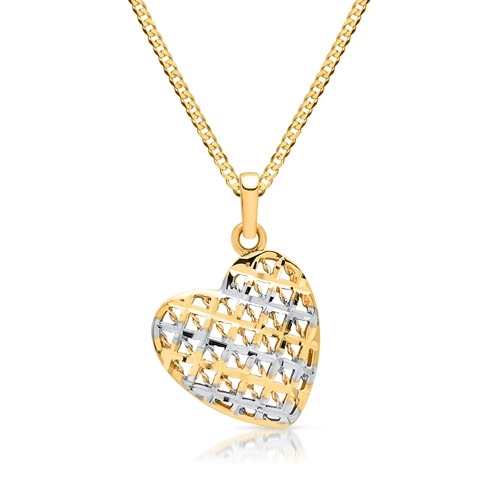 Filigran vedhæng med hjerte i 8 karat Guld og Hvidguld