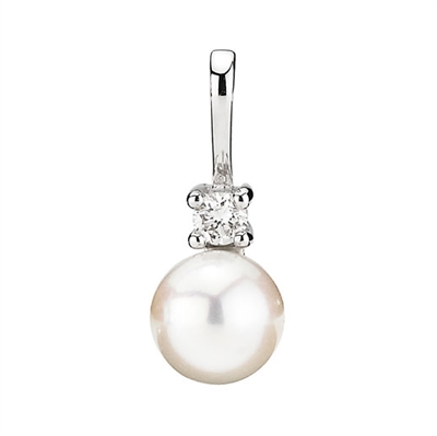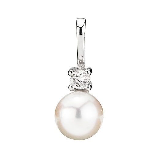 Vedhæng i 14 kt. Hvidguld m. diamant & perle