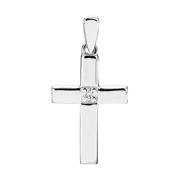 Vedhæng i 14 kt. Hvidguld m. kors