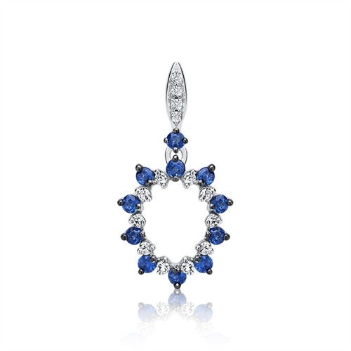 Vedhæng i 14 karat Hvidguld med diamanter og safir