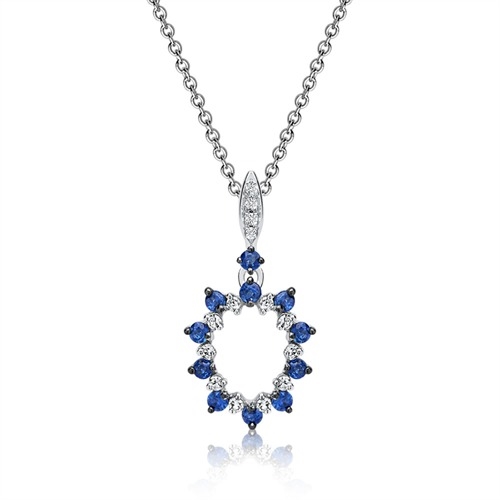 Elegant vedhæng med 14 diamanter og 11 safirer i et flot mix