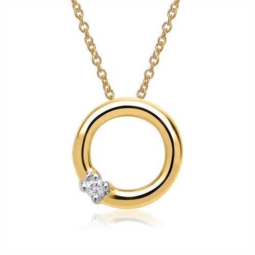 Rundt vedhæng i 14 karat Guld med diamant