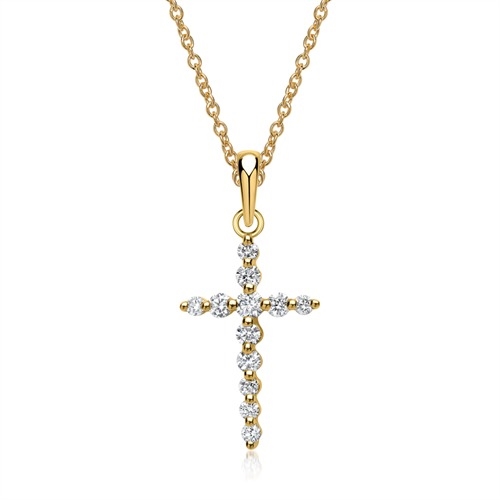 Vedhæng med kors i 14 karat Guld og diamanter