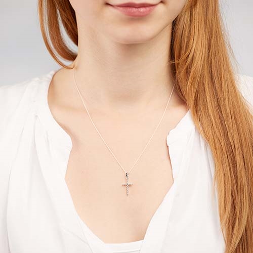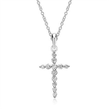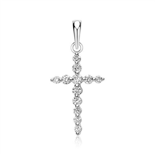Vedhæng med kors i 14 karat Hvidguld og diamanter