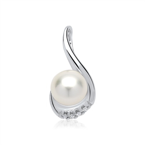 Vedhæng i 14 kt. Hvidguld m. perle & diamanter