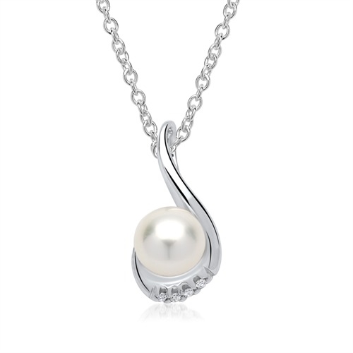 Vedhænget er med en perle og 4 hvide funklende diamanter