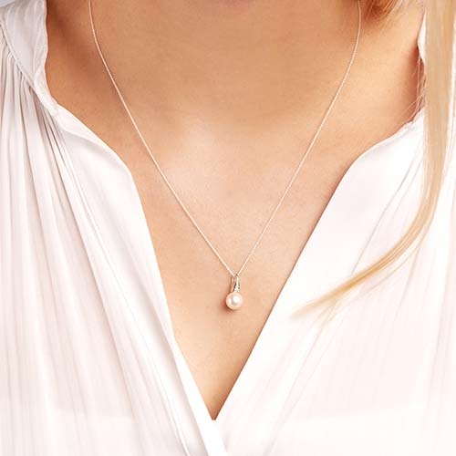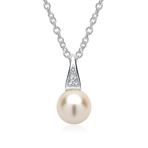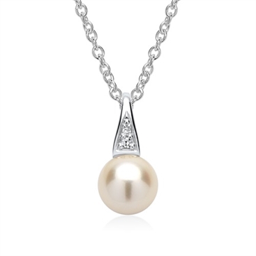 Yndigt vedhæng i 14 karat Hvidguld med perle og diamanter