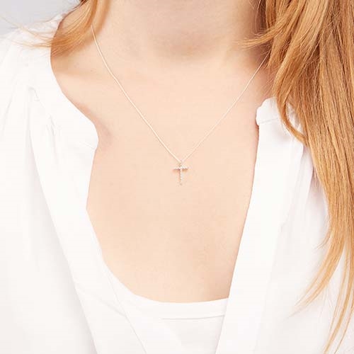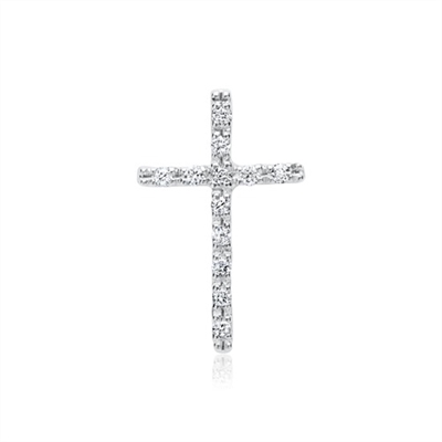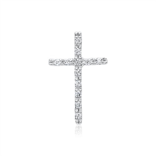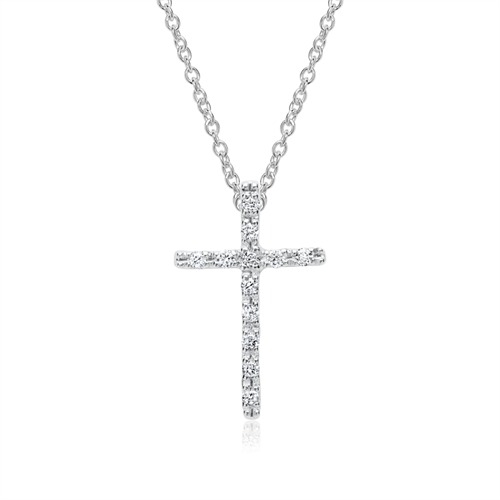 Filigran vedhæng med kors i 14 karat Hvidguld og diamanter