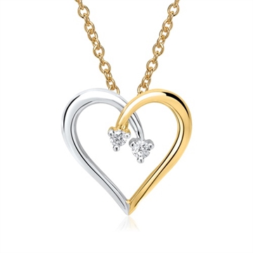 Hjerte i guld og hvidguld besat med 2 funklende hvide diamanter