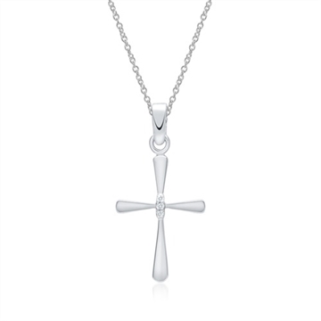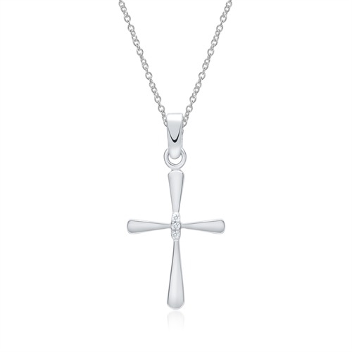Yndigt kors i hvidguld besat med 3 funklende hvide diamanter