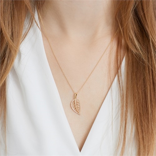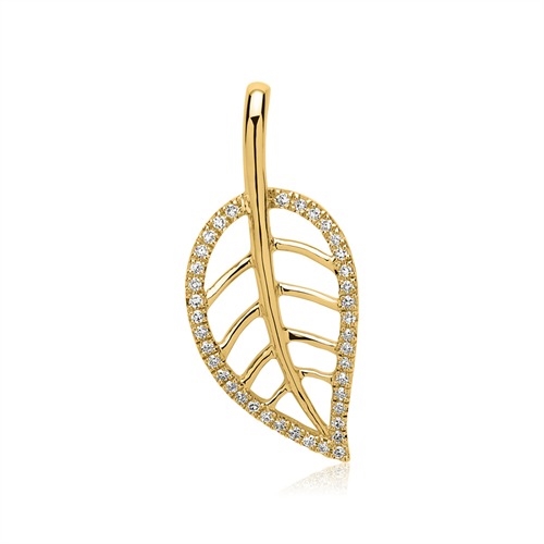 Vedhæng i 14 karat Guld med diamant besat blad