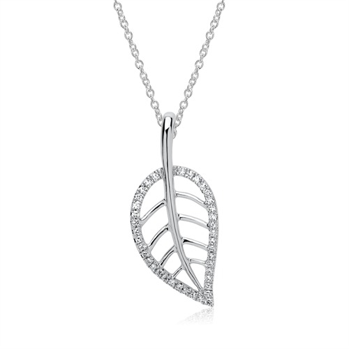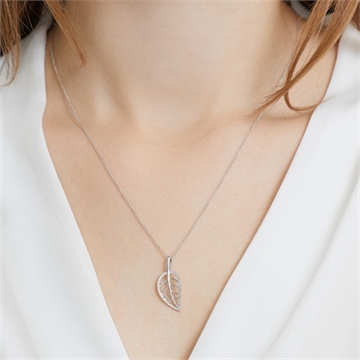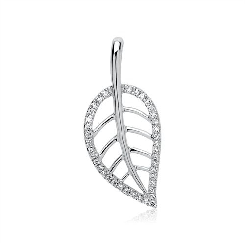 Vedhæng i 14 karat Hvidguld med diamantbesat blad