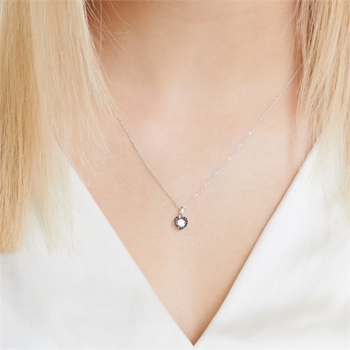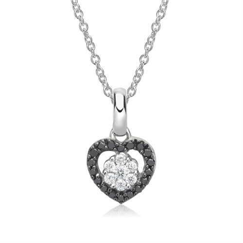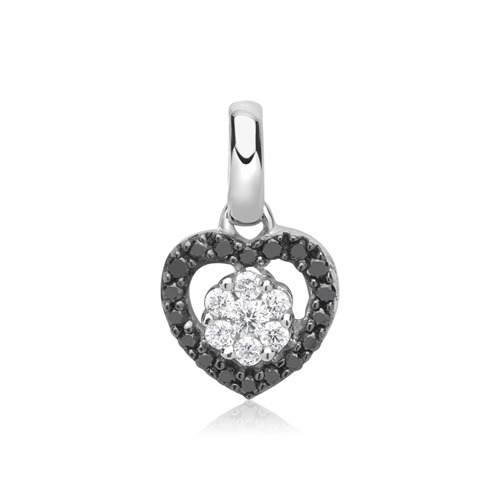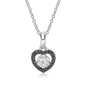 Yndigt hjerte besat med 7 hvide diamanter og 18 sorte diamanter