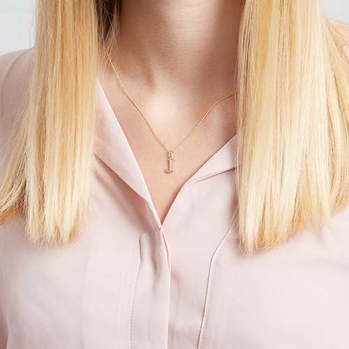 Vedhængets overflade er poleret og bogstavet er besat med zirkoniasten