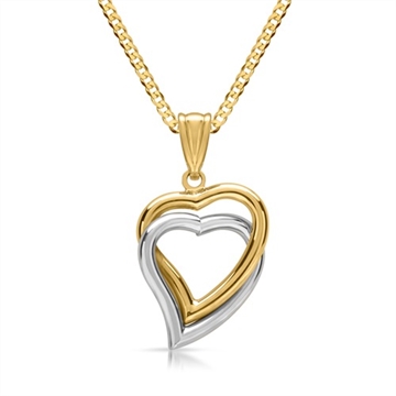 Vedhæng i 8 karat Guld og Hvidguld med hjerter
