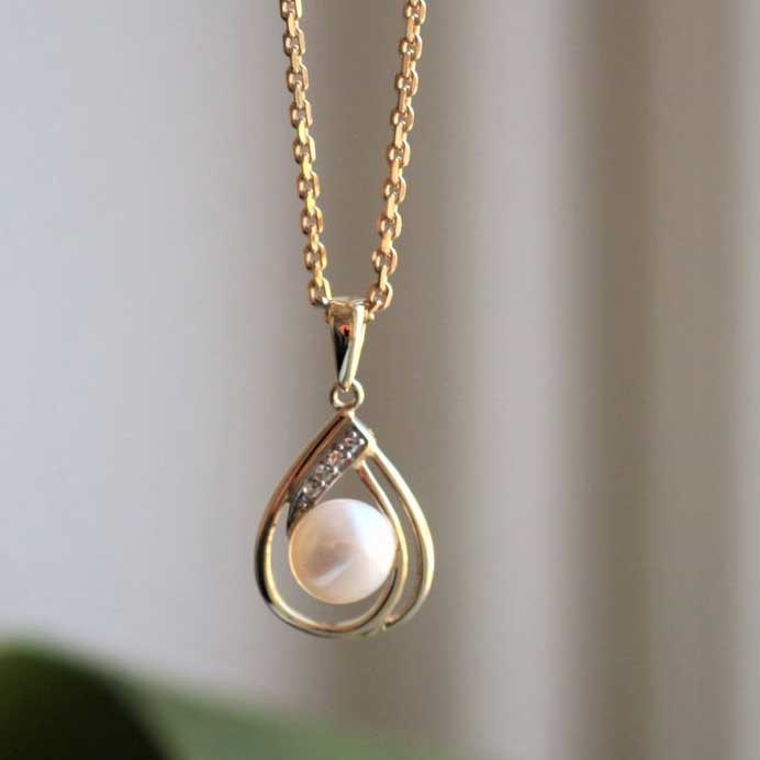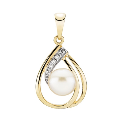 Vedhæng i 8 kt. Guld m. perle og diamant