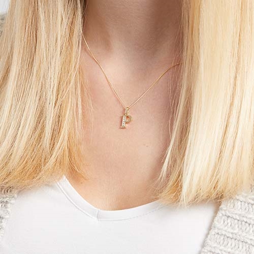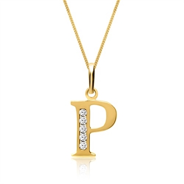 Vedhængets overflade er poleret og bogstavet er besat med zirkoniasten